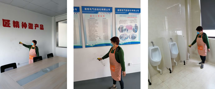 公司保潔員每天堅持對公司內部的會議室、走廊通道及衛(wèi)生間等場所噴灑酒精消毒,確保公共環(huán)境的衛(wèi)生